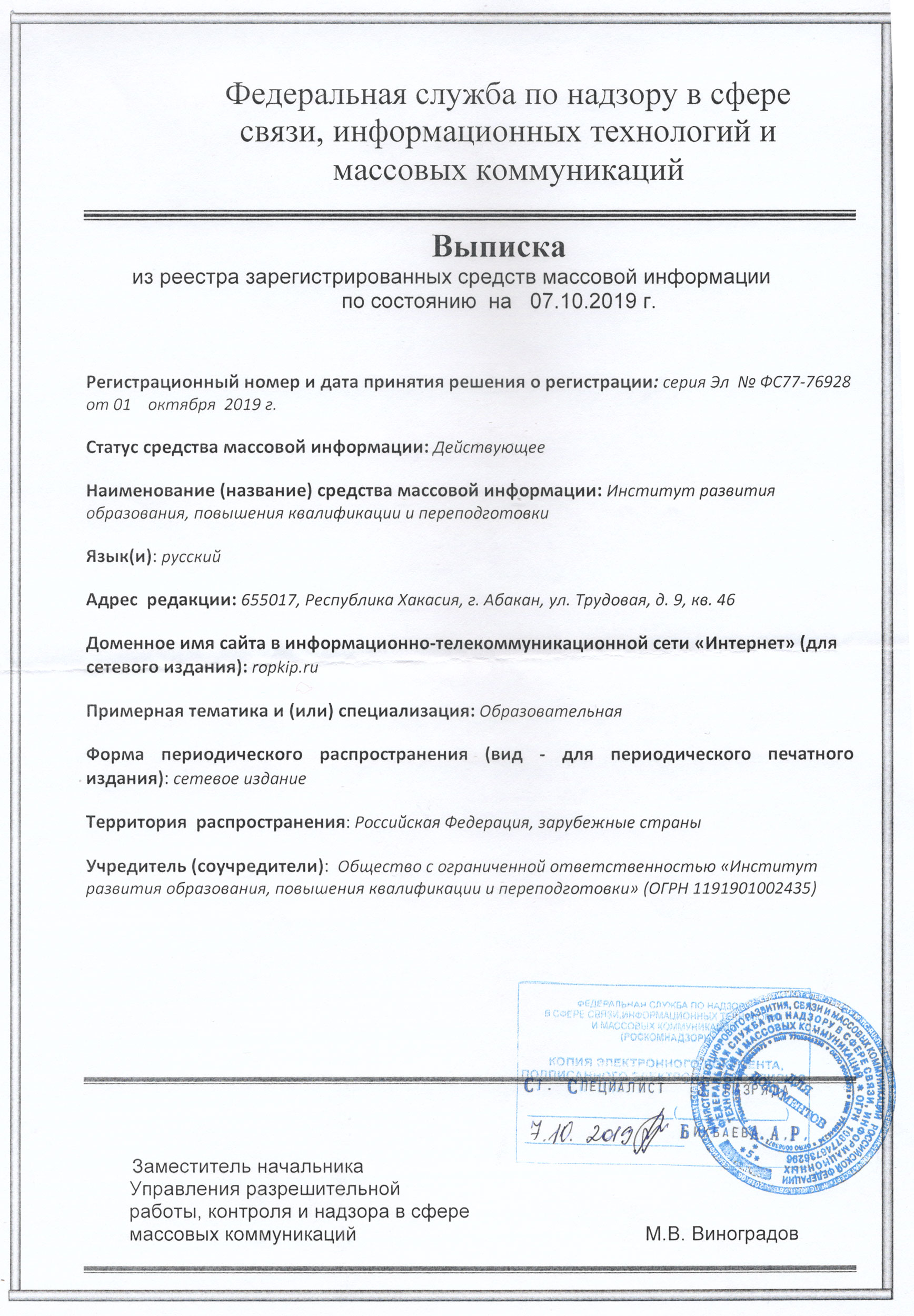 Свидетельство о регистрации СМИ: ЭЛ № ФС 77 - 69186, выдано 24.03.2017г. Федеральной службой по надзору в сфере связи, информационных технологий и массовых коммуникаций